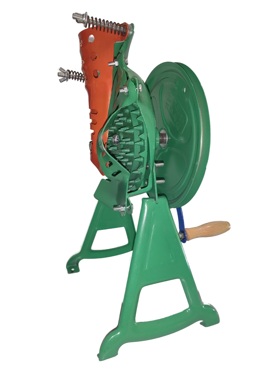 Устройство универсально: работает с попкорном, посевной кукурузой и кормовой кукурузой. Пружина натяжения легко регулируется под любой размер початка.